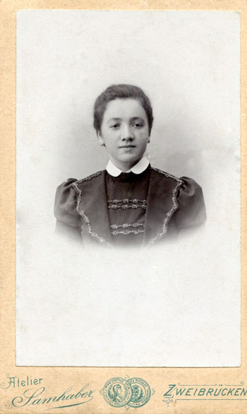 Katharina Hilpert, daughter of Jakob Hilpert and Katharina Schneider, was born on 11 May 1880 at Limbach, Homburg, Rheinpfalz, Bayern, German Confederation (Germany).1,3,4,5 She was baptized on 23 May 1880 at Limbach. Her godparents were Friedrich Hilpert, son of Ludwig Hilpert, and Carolina Schneider, daughter of Philipp Schneider.3 She married Johann Georg Forster, son of Jakob Forster and Elisabeth Zinssmeister, on 19 March 1904 at Limbach.4,6 The family then lived at Bielefeld, Nordrhein-Westfalen.7,8